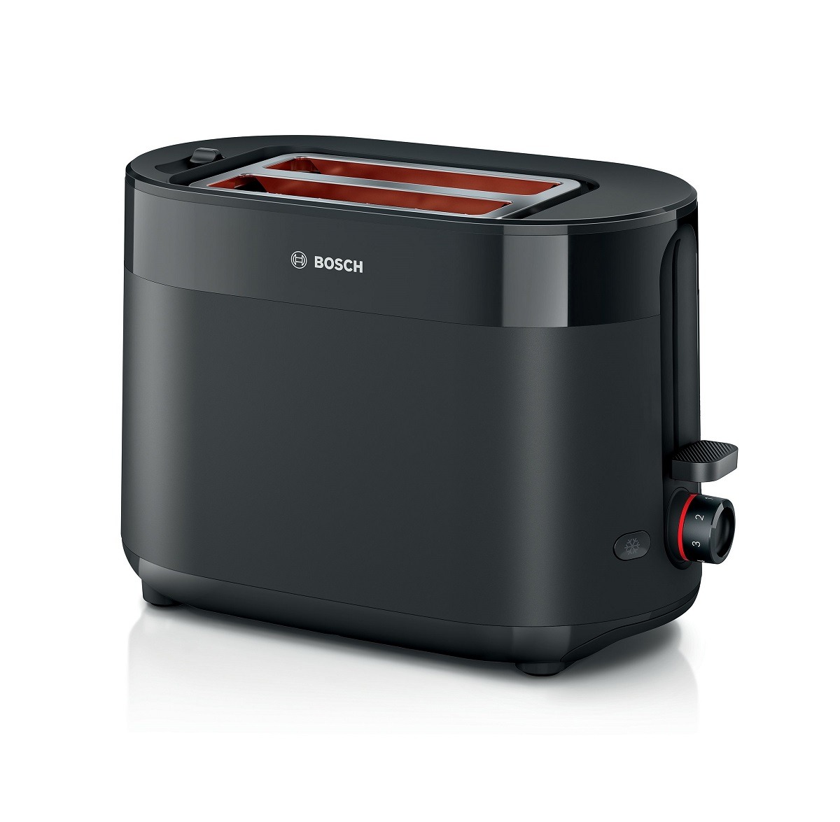 Tostador Bosch TAT2M121, MyMoment, Negro de cómodo manejo y calentador de panecillos plegable. Potencia: 800-950 W. Calienta-panecillos integrado y plegable.