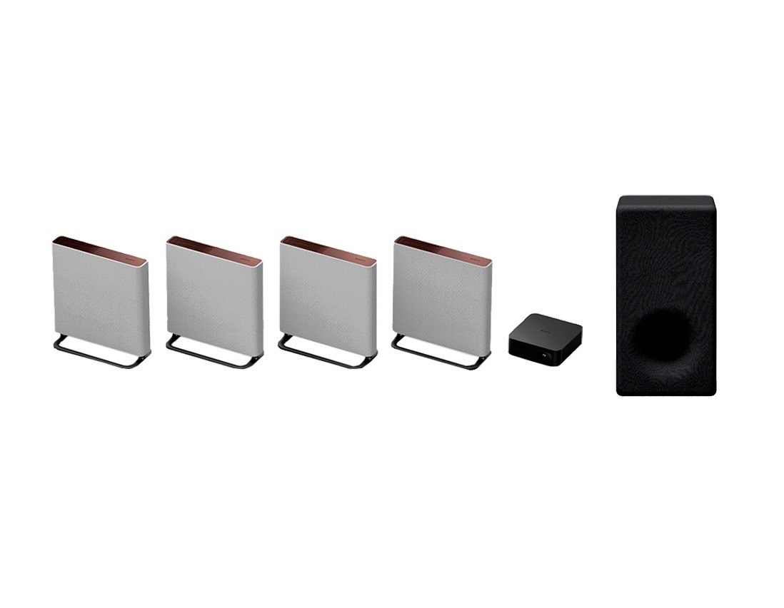 Sistema de cine en casa insignia con cuatro altavoces inalámbricos, 360 Spatial Sound Mapping, campo sonoro optimizado, altavoz de 3 vías, Dolby Atmos® y DTS:X®.